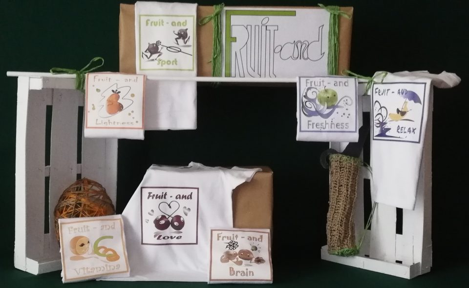 Tornando a noi, Fruit-and propone per la sua linea bimbi, sette animazioni stampate con ECO PRINTING, inchiostri ecologici per la serigrafia, immagini simpatiche in cui la frutta protagonista, ricrea situazioni Love and brain, ci parla delle sue proprietà, vitamina C, genera uno stato fisico, lightness and freshness, richiama delle circostanze in cui il suo impiego può apportare benefici quali lo sport e il relax…